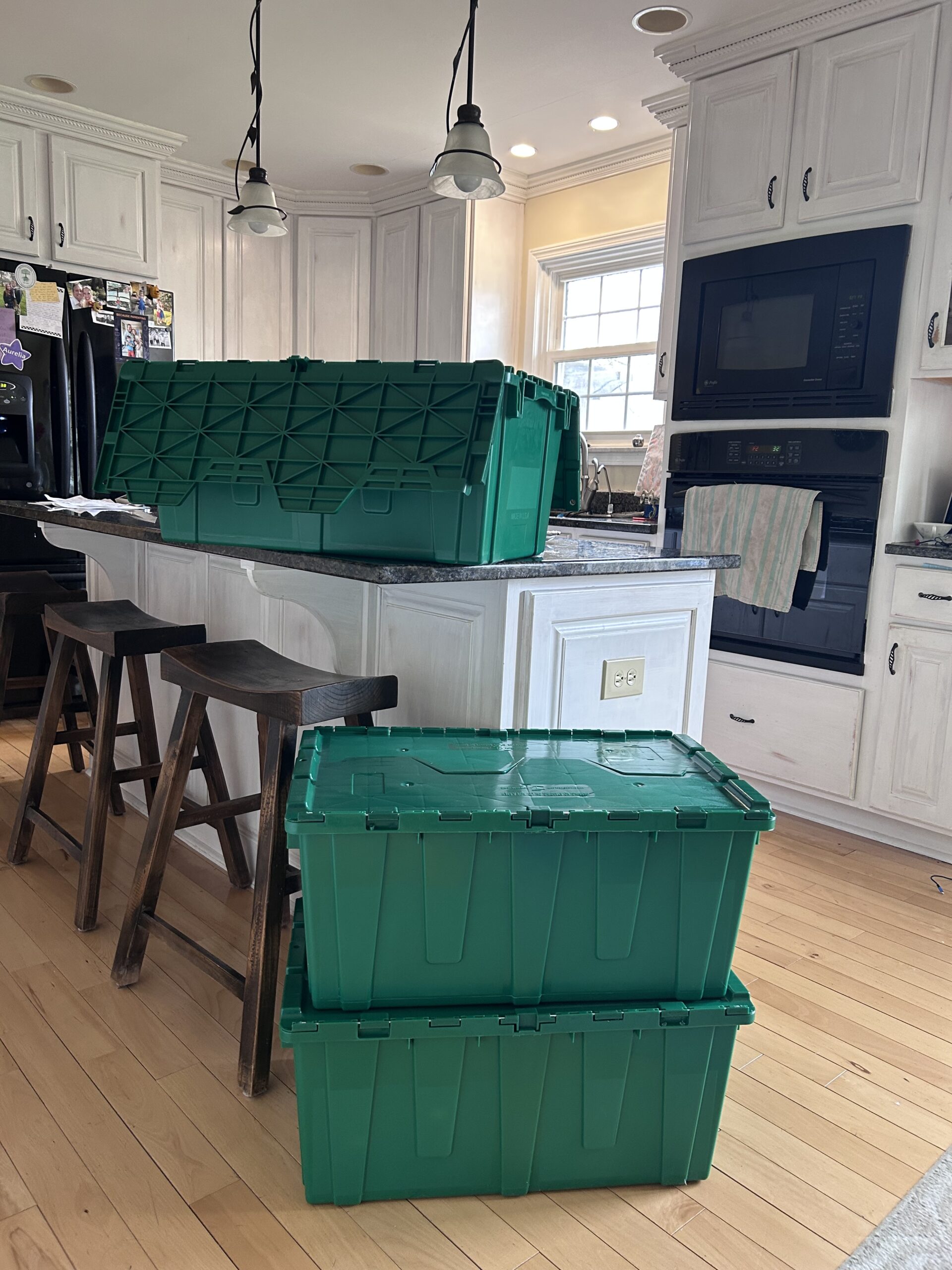 These aren’t one-time-use boxes. Our totes are heavy-duty, reusable, cleaned and ready to go. They’re designed to handle real-life moving—books, clothes, kitchen gear, all of it. Big enough for bulky loads and strong enough for the heavy stuff, they can handle everything from stacks of books to packed-out closets. They stack neatly, carry easily, and hold up without falling apart halfway through your move.